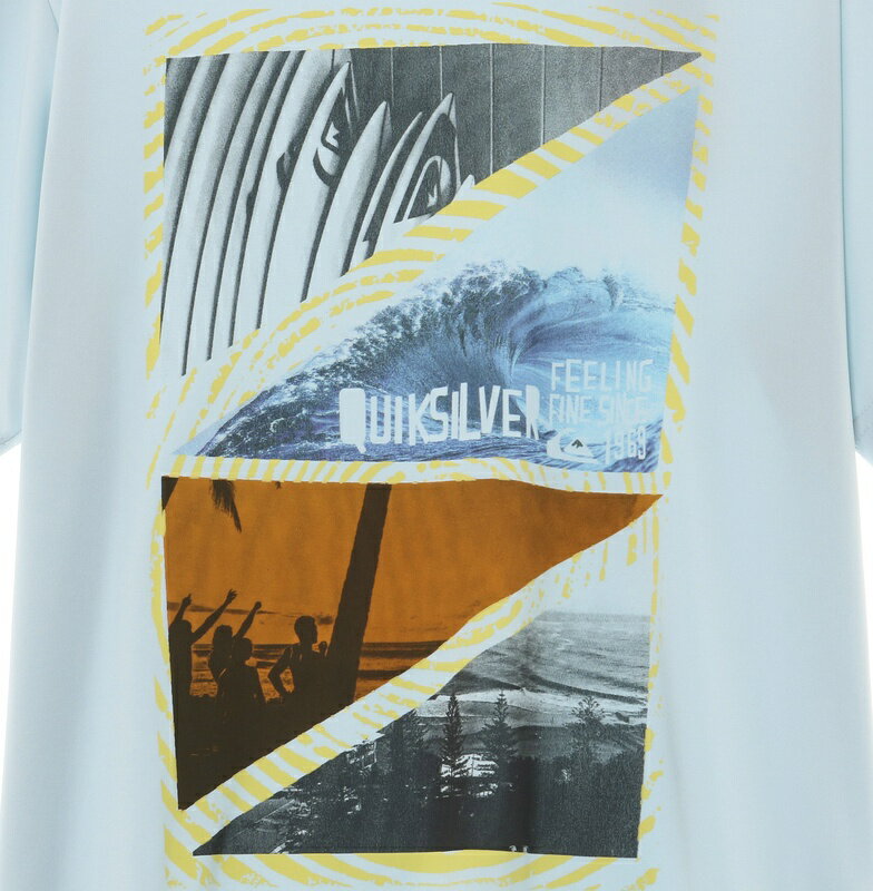 フロントにプリントされた、グラフィカルなコラージュフォトがスタイリッシュなラッシュガードです。