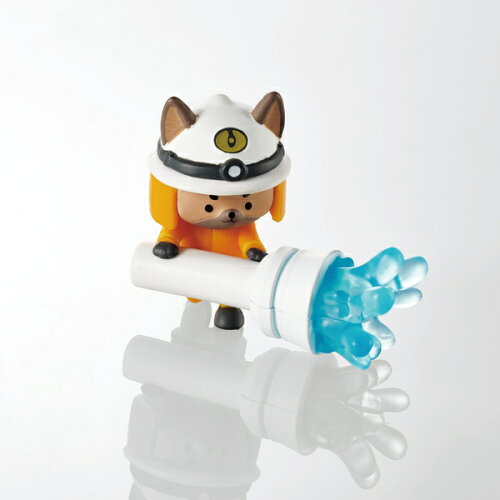 ■消防士のコスチュームを着たかわいいキャラクターがスマートフォンに放水している姿に癒されます。